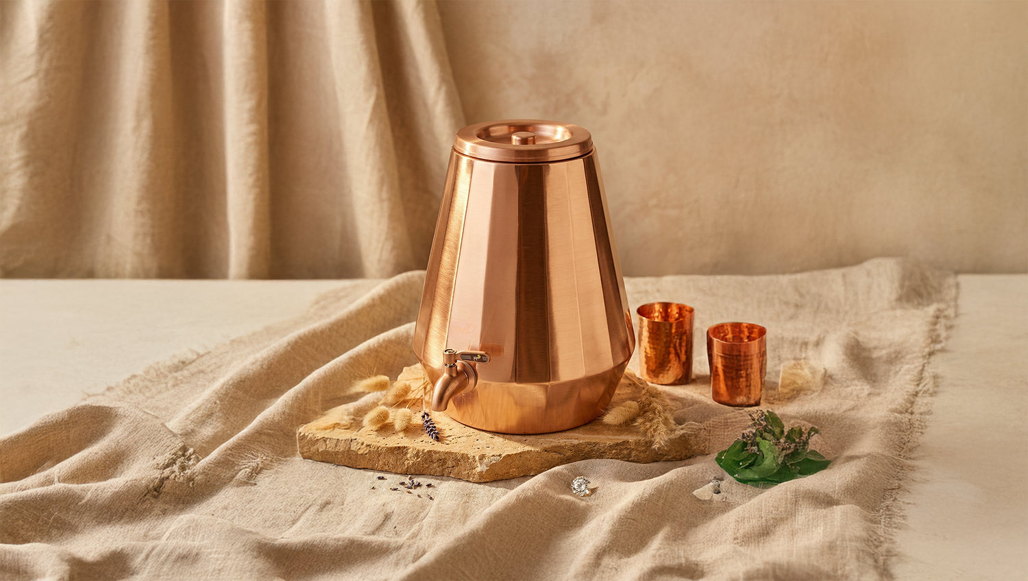 Before refrigerators. Before filters. India stored water in copper and it worked. The Kohinoor Matka brings that back, with a form designed for modern homes and prints inspired by India's textile heritage.