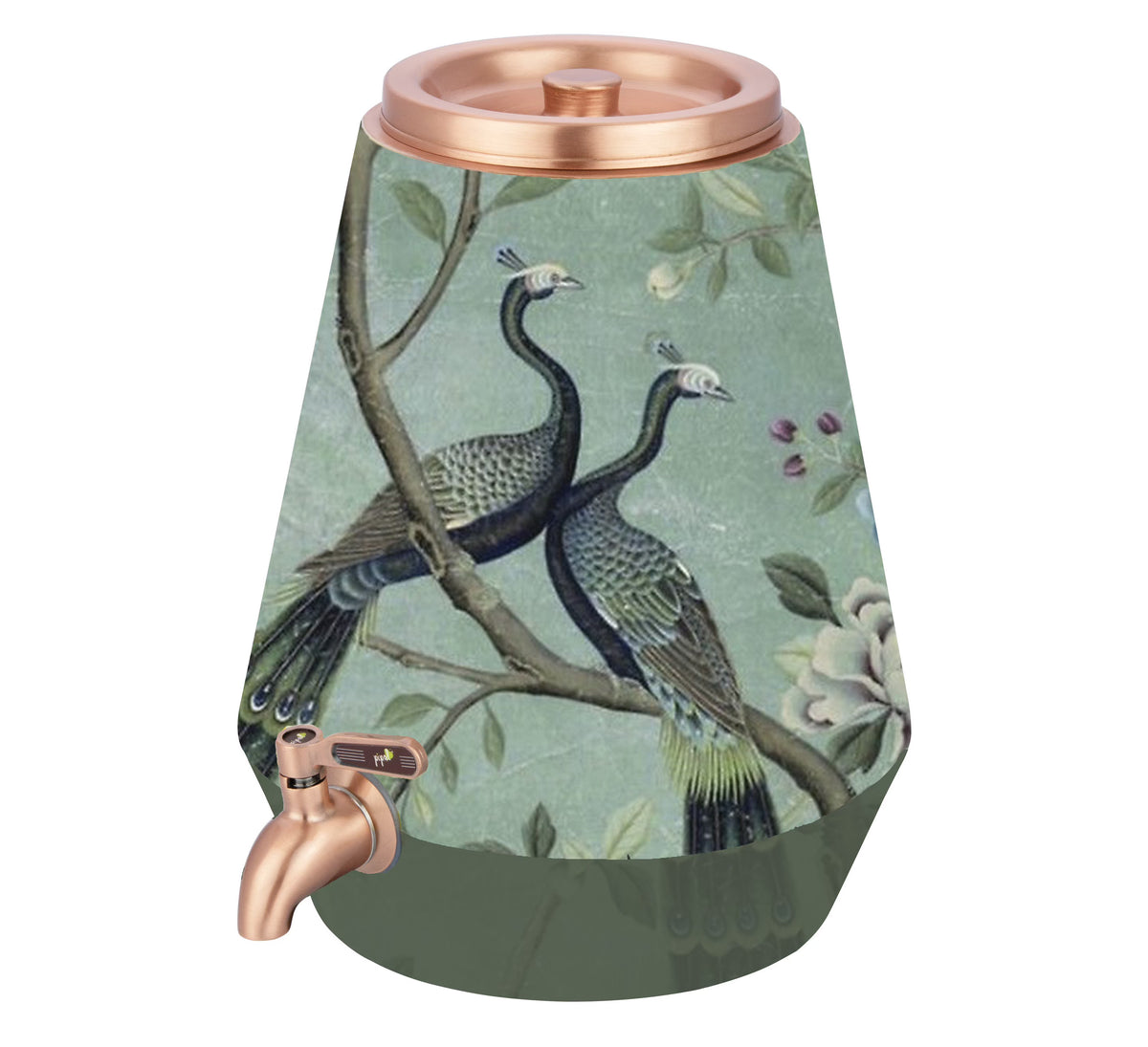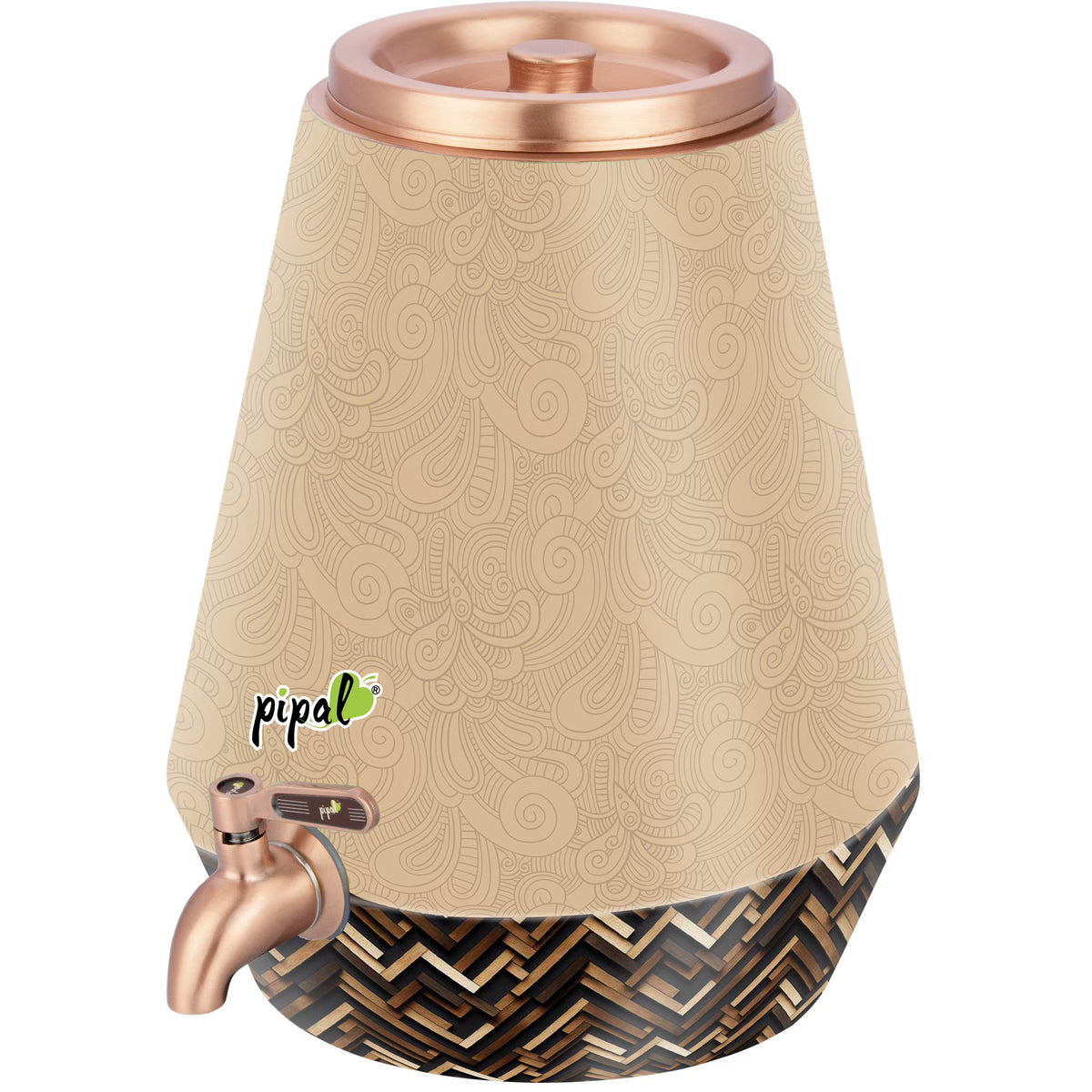 The Pipal Kohinoor Printed Copper Matka stands out with its unique, diamond-like shape, bringing a modern twist to traditional copperware. Its intricate print and bold design make it more than just a water pot, it’s a statement piece that adds sophistication to any home or office.