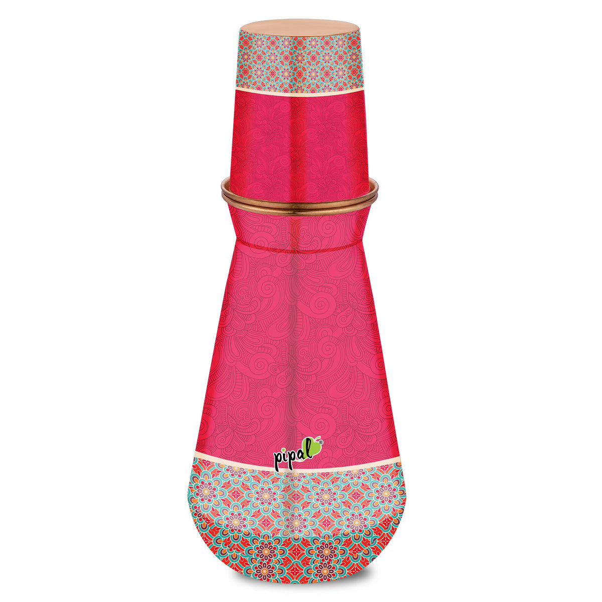 Experience hydration in style with the Pipal Kumbh Designer Copper Carafe, a perfect blend of traditional design and contemporary flair. With its classic shape reminiscent of heritage, this carafe features a vibrant modern print that adds a unique touch to any setting. Crafted from pure copper, it naturally purifies your water, promoting health and wellness with every sip.