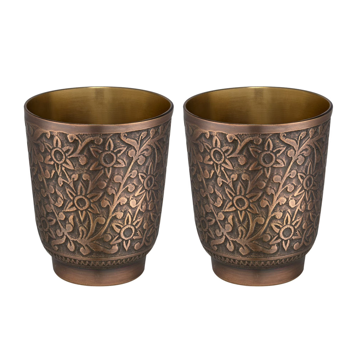 The Pipal Vintage Glass Set is a stunning tribute to timeless artistry and charm. Each glass is crafted from premium brass, featuring intricate embossed carvings and a vintage polish on the exterior that radiates sophistication. This set exudes a rich and classy appeal, perfect for adding a touch of tradition to your gatherings.